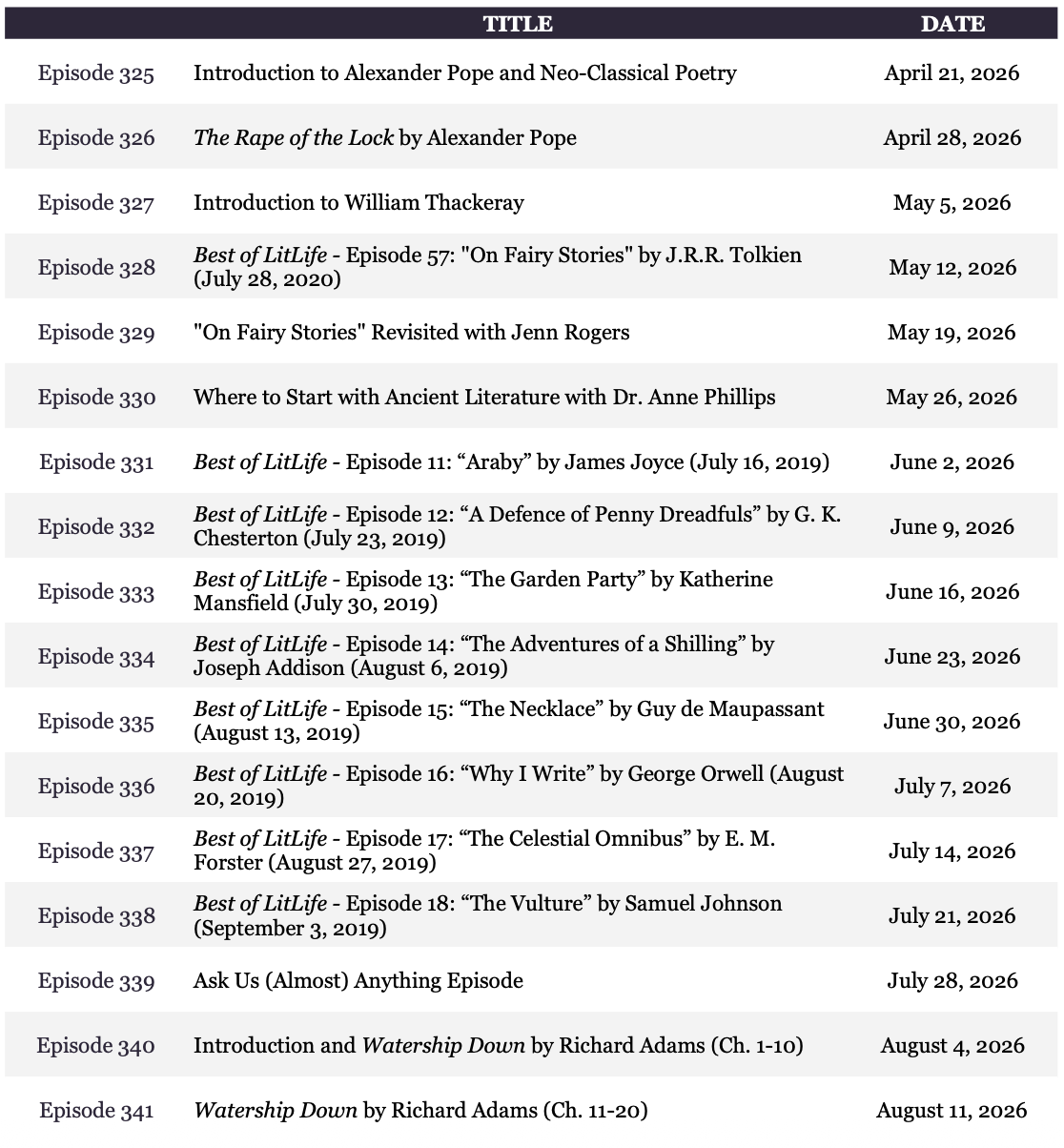 We love our video Q & A sessions so much that we decided to make these book chats a regular feature for our Patreon Fellows–even if we are not yet finishing a series on the podcast. Every first Wednesday of the month at 7 pm EST we will meet to discuss whatever we are reading, whatever you are reading, various literary topics, etc. We might even just hang out and share literary anecdotes! Join us for laughter and book talk at patreon.com/theliterarylife!